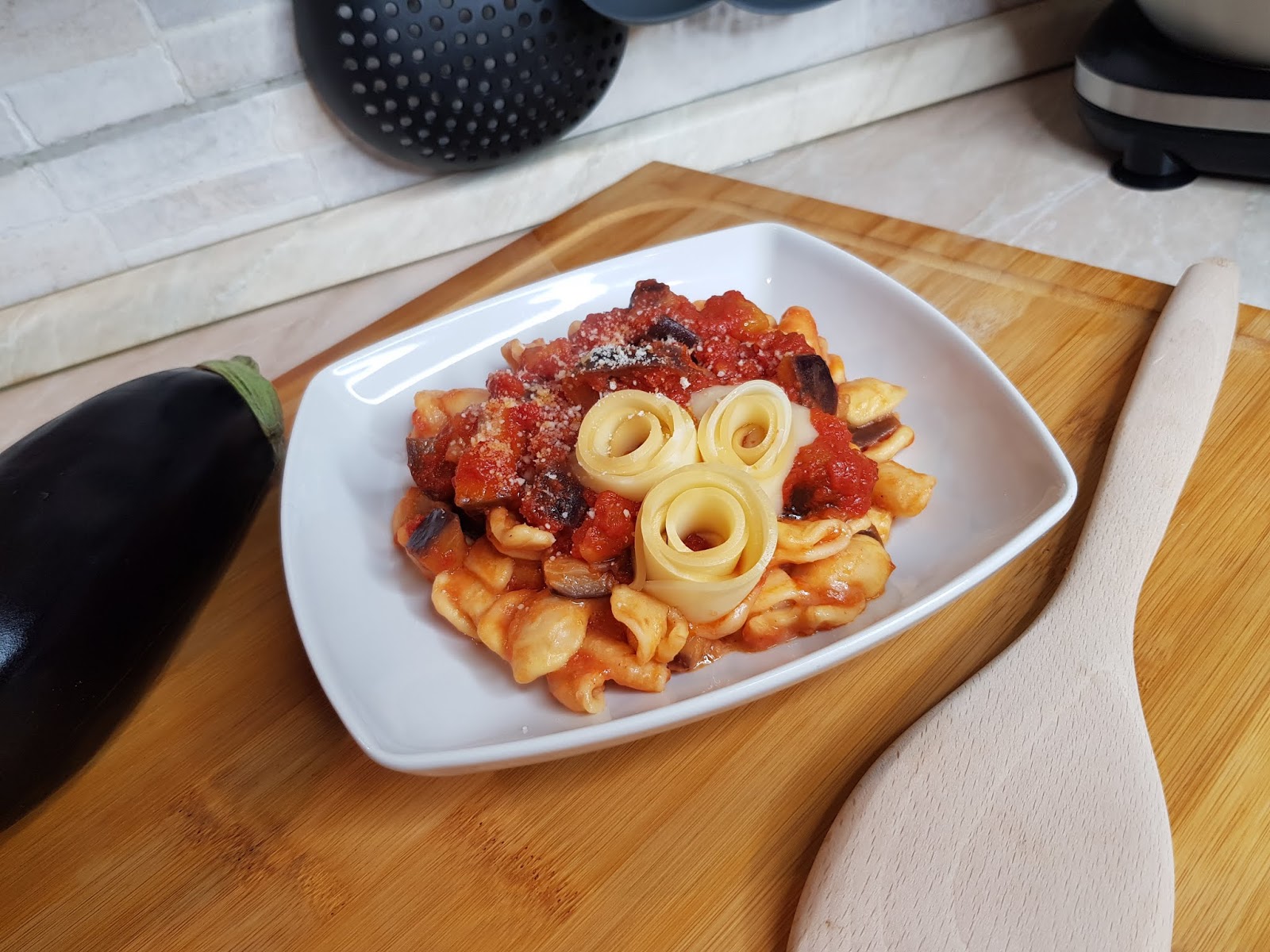 ORECCHIETTE CON MELANZANE E ROSELLINE DI PROVOLA