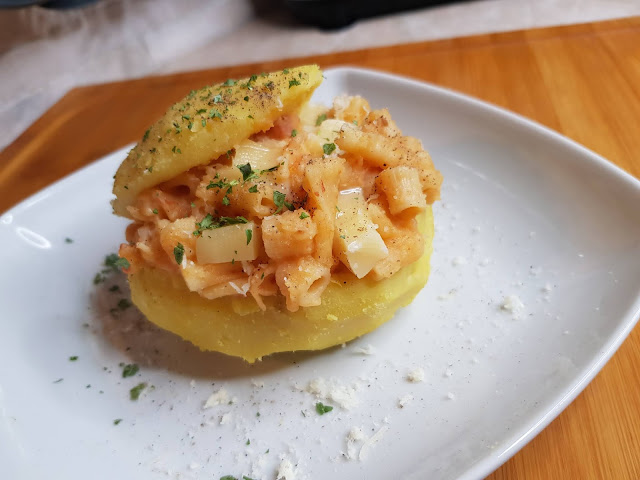 Quella che vi propongo oggi è la mia particolare rivisitazione: pasta e patate con cuore cremoso di provola affumicata.
