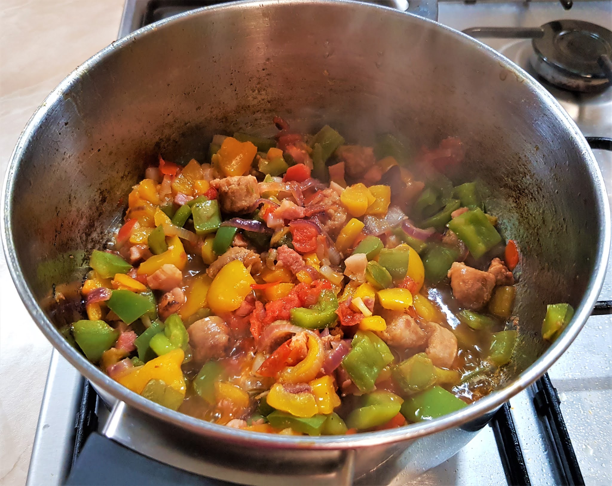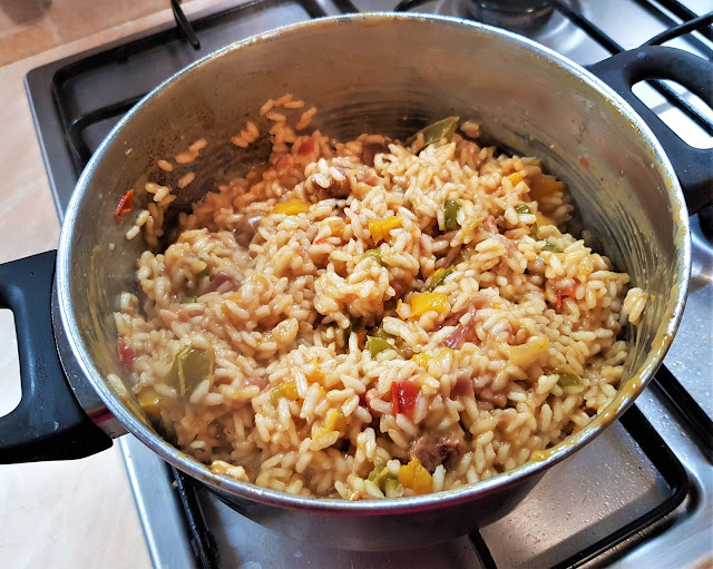 PROCEDIMENTO PER IL RISOTTO CON PEPERONI E SALSICCIA