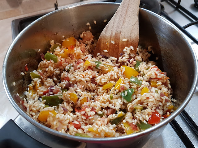 Il risotto con peperoni e salsiccia è un primo piatto molto gustoso.