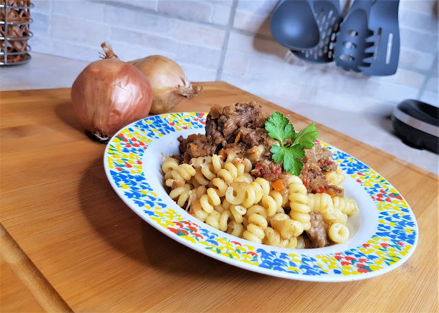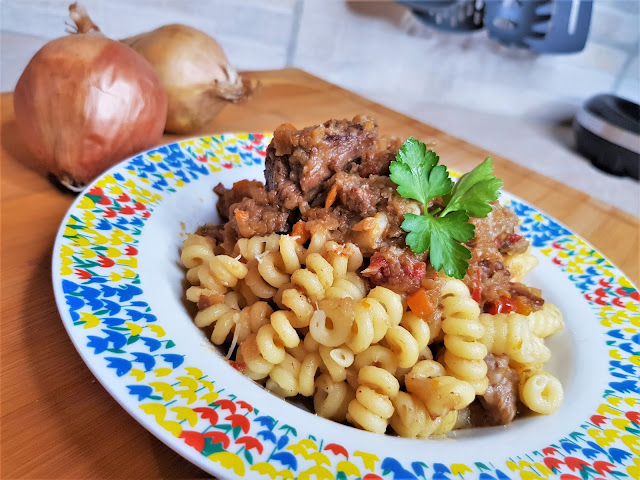 In questa ricetta ho deciso di condire la pasta con il sugo e di servire la carne assieme come secondo.